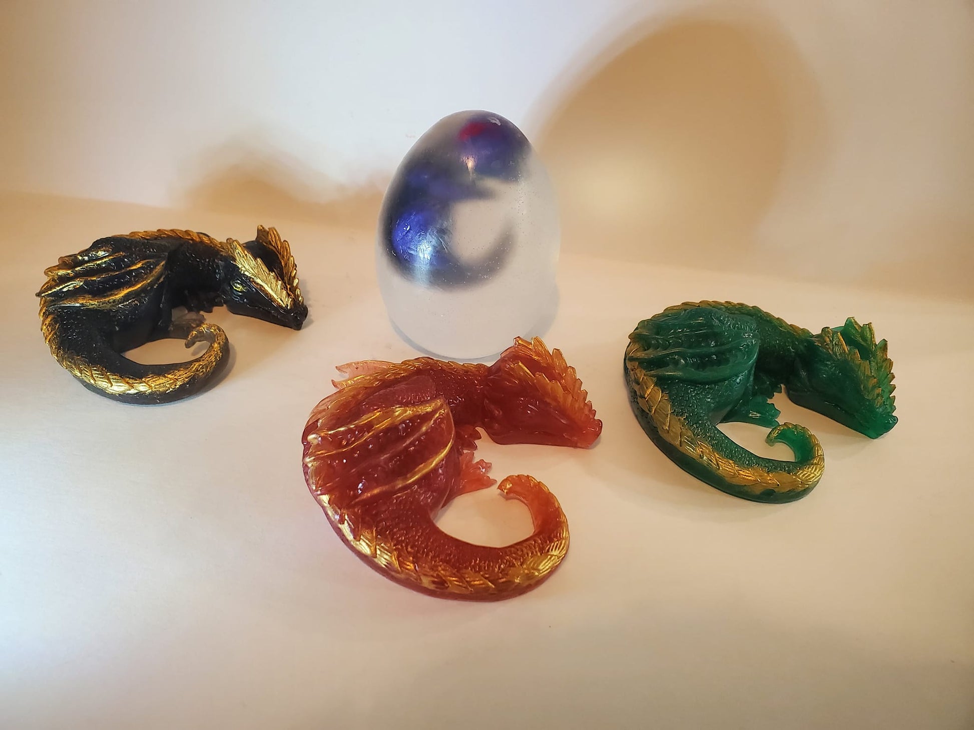 Now you can have your very own dragon! Scented with Bay Rum fragrance oil. (Baby dragon in egg sold on a separate listing). 3 colors available.